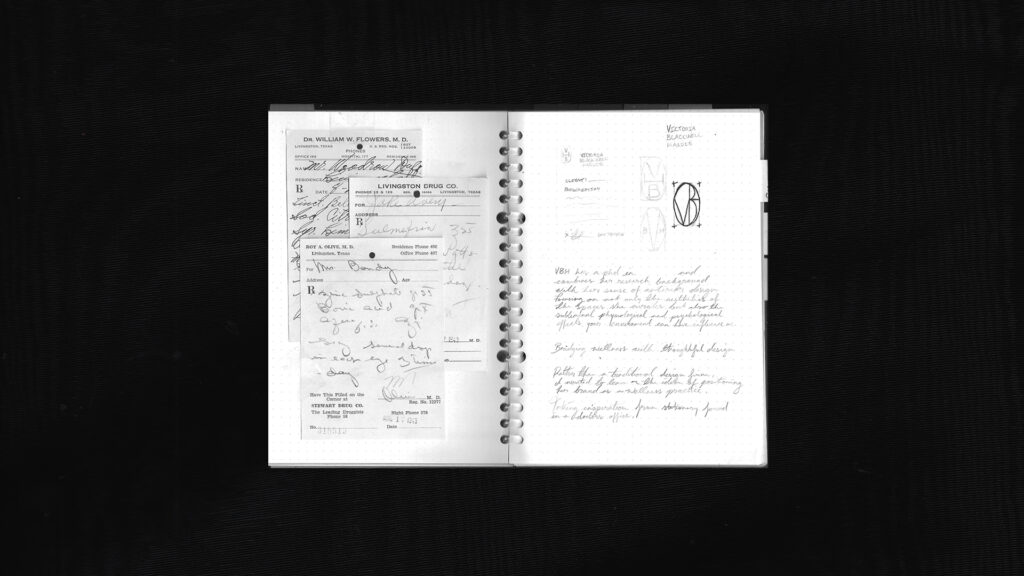 The identity system translates this concept through typography, stationery, and brand elements that reference clinical documentation and prescription pads. Structured layouts and restrained visual choices position VBH as a design practice rooted in clarity, balance, and care.